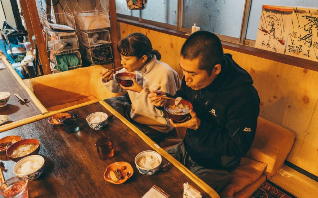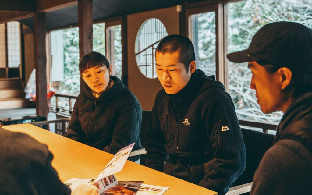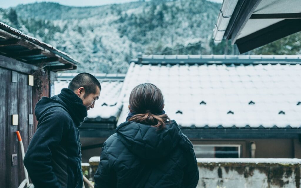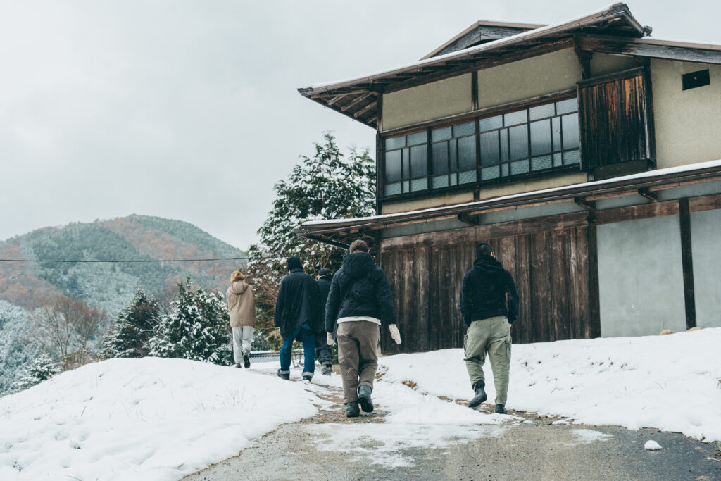 そんな天川村で初めての「暮らす奥大和」、そのプログラム初日。うっすらと覆われた道に轍をつけて到着したのは、京都市内で喫茶 「暖々(だんだん)」を営む渡邊健吾さんと斎藤萌香さんです。現在移住先を検討中の二人は知人を介してプログラムの募集を知り、この日初めて天川村にやってきました。