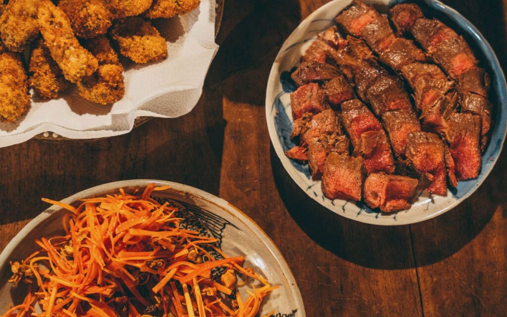 猪肉はこれまでほとんど食べる機会がなかったという萌香さんは、その味わいに感激した様子です。このお肉は、元々は京都の日本料理店の料理人だった山本さんが猟で獲ったもの。料理の知識や経験を活かして丁寧に処理された猪肉は、ジビエ特有のクセが少なく、旨味がしっかりと感じられます。ゆくゆくは狩猟にも挑戦し、獲物の皮を使って自作の太鼓を作ってみたいという健吾さんは、山本さんに熱心に質問を投げかけていました。