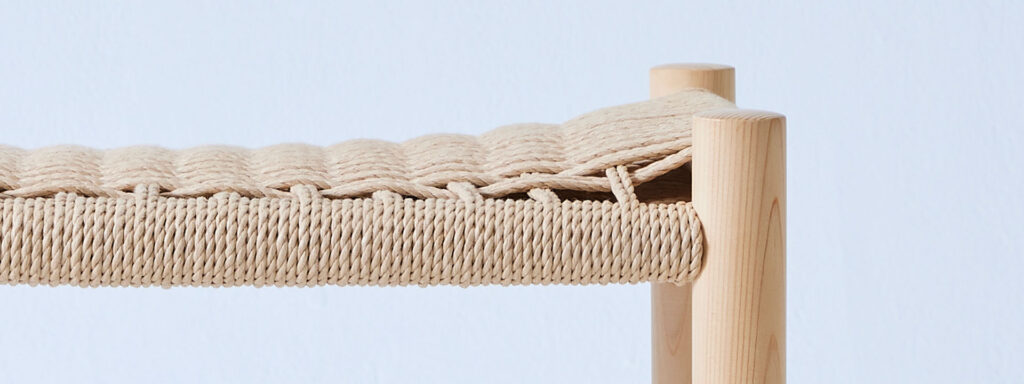 Considering Japan’s humid and hot climate, I chose materials suited to our environment. Interestingly, Yoshino cypress is highly resistant to mold, making it an ideal choice. For the seating, I opted for paper cord, a type of string made from paper. Japan has a tradition of using straw, like in thatched roofs, and paper cord, like straw, doesn’t retain moisture, making it cool in summer and warmer than wooden seats in winter.