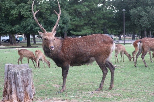 また、身を守るために犬に襲いかかることもあります。奈良公園内を散歩するときは、必ずリードをつけ、犬をシカに近づけないでください。