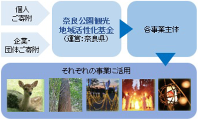 奈良県では、奈良公園を世界に誇れる公園として永く後世に伝えていくため「奈良公園観光地域活性化基金を開設しています。奈良公園観光地域活性化基金」を通じた、皆さまからの温かいご支援をお待ちしています。