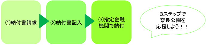 A 指定金融機関で納付いただくと、領収書(奈良公園観光地域活性化基金寄附申込(納入)書兼領収書)が渡されますので、大切に保管いただきますようお願いいたします。