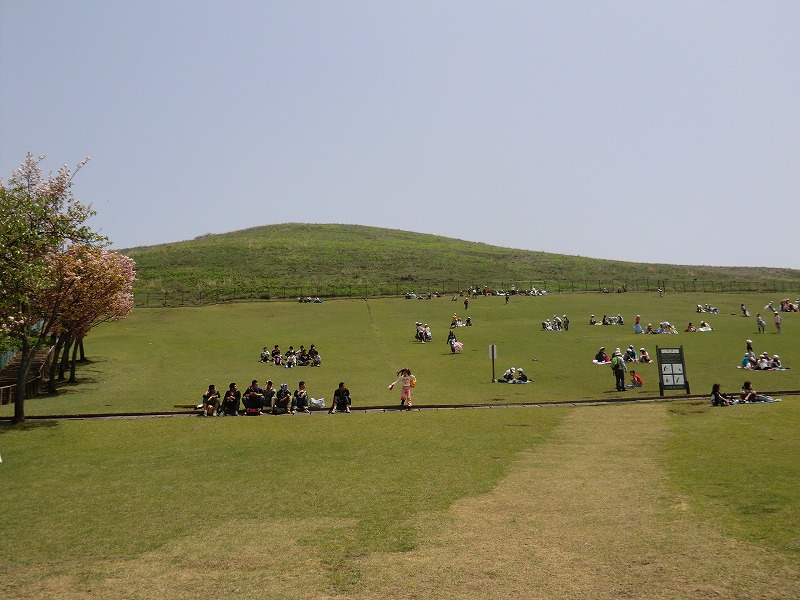 面積33ヘクタールの芝生に覆われた山で、山頂には、5世紀頃に築造されたといわれる史跡鶯塚古墳があります。毎年1月には、若草山焼きがあります。夜空をこがす壮観さはまさに、炎の祭典というのにふさわしい行事です。