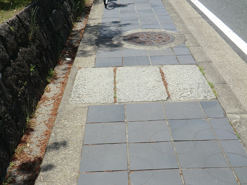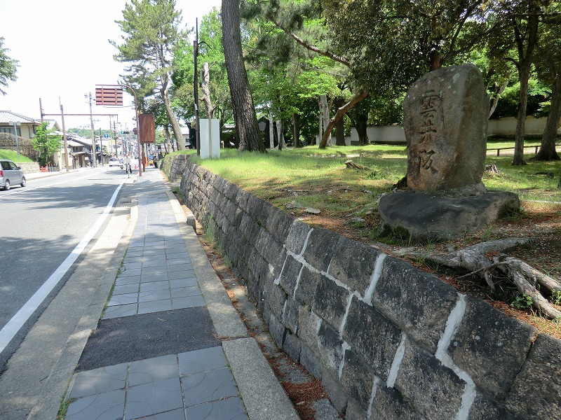 南都八景の一つ、「轟橋の行人」の碑の前は、石の色を変えて橋があったことを示しています。